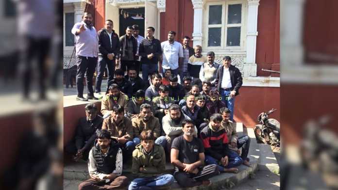 આ રેઇડ દરમિયાન એલસીબીની ટીમએ દોસમામદ જુમા ખીરા, અનવરમીયા આમદમીયા શાહમદાર, રઇશ સલીમ ખુરેશી, ગિરીશ છમનમલ રાજાણી, ઇલિયાસ ઇકબાલ ધ્રોલિયા, દિનેશ ઉર્ફે ટકો રમણિક લખિયાર, ફિરોઝ ઉર્ફે પપ્પુ હુશેન ખફી, કલ્પેશ બાલમુકુંદ પંડયા, અશરફ ઉર્ફે પીપો મામદ ખફી, હનિફ ઇસ્માઇલ હમીરાણી, અહેમદ કાસમ હાલાણી, રવજી નારણ વાઘોણા, ઇમરાન ઉર્ફે ઇભુડો પતાણી, જાવિદ ઇબ્રાહિમ ખફી, મહમદ ઉર્ફે કારો બોદુ ખીરા, જયમીન મુકેશ નરેલા, અબ્દુલ યુસુફ ખફી, જયેશ હરદાસ માંગલિયા, ચેતન રણછોડ રાઠોડ, બકુલ હેમંત કાપડી, ભાવેશ દિનેશ સામાણી, લક્ષ્મણ ઇશ્ર્વરલાલ થારવાની, નવાઝ મુસા કોટા, સંજય હરદાસ માતકા નામના 24 શખ્સોને ઝડપી લીધા હતાં. જ્યારે કિશન મનસુખ મકવાણા, અલ્પેશ ઇબ્રાહિમ અમરેલિયા નામના બે શખ્સો નાશી ગયા હતા.