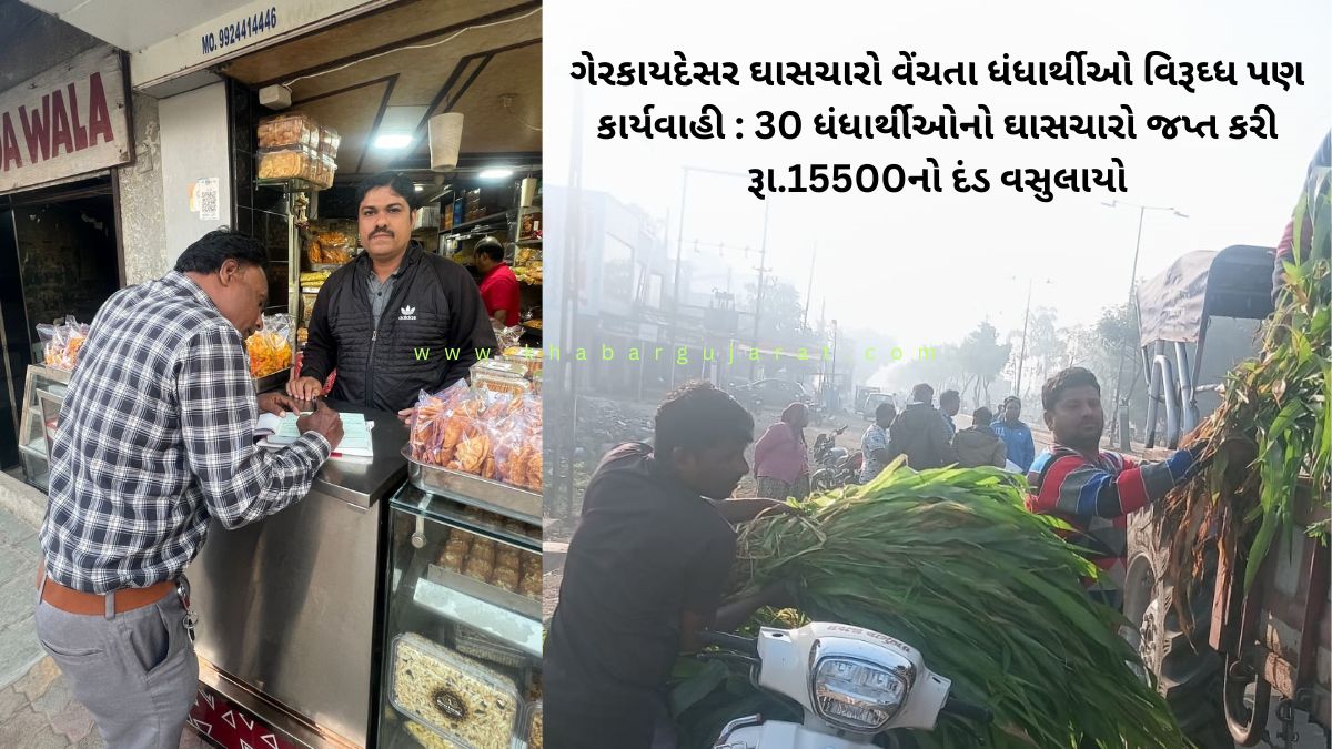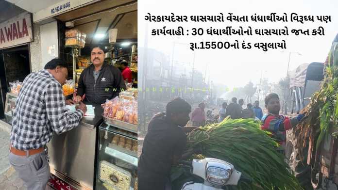 ગેરકાયદેસર ઘાસચારો વેંચતા ધંધાર્થીઓ વિરૂઘ્ધ પણ કાર્યવાહી : 30 ધંધાર્થીઓનો ઘાસચારો જપ્ત કરી રૂા.15500નો દંડ વસુલાયો