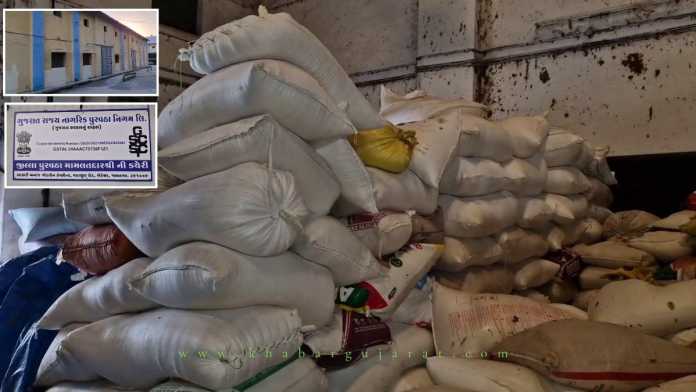 દરોડાની વિગત મુજબ જામનગર શહેરના ગુલાબનગર ઓવરબ્રીજ પાસેના ખુલ્લા મેદાનમાં અનાજનો શંકાસ્પદ જથ્થો પડયો હોવાની બાતમીના આધારે કલેકટર કેતન ઠક્કરની સૂચનાથી જિલ્લા પુરવઠા અધિકારી એસ. ડી. બારડ તથા સ્ટાફે સ્થળ પર પહોંચી જઇ તપાસ હાથ ધરતાં સ્થળ પરથી 13,990 કિલો ઘઉં અને 26,250 કિલો ચોખા તથા 300 કિલો ચણા અને 390 કિલો બાજરીનો જથ્થો મળી આવ્યો હતો. જેથી પુરવઠા અધિકારીએ શંકાસ્પદ મળી આવેલા રૂા. 14,28,510ની કિંમતના અનાજનો જથ્થો કબ્જે કરી સરકારી ગોદામમાં મોકલી દીધો હતો અને આ અનાજના જથ્થાના સેમ્પલ લેબોરેટરીમાં પરિક્ષણ માટે મોકલવામાં આવ્યા હતા. ઉપરાંત પુરવઠા અધિકારી તથા ટીમે અનાજના જથ્થાની સાથે સાથે એક બાઇક, ત્રણ રિક્ષા, વજનકાંટો સહિતનો કુલ રૂા. 16,51,310નો મુદ્દામાલ કબ્જે કરી આગળની કાર્યવાહી હાથ ધરી હતી અને આ અનાજના જથ્થાનો રીપોર્ટ આવ્યા બાદ આગળની કાર્યવાહી કરવામાં આવશે તેમ પુરવઠા અધિકારીએ જણાવ્યું હતું.