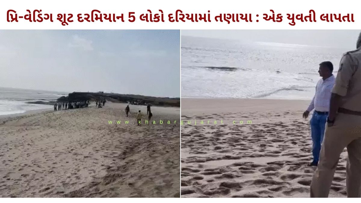 ગીર સોમનાથ જિલ્લાના વેરાવળ નજીક આવેલા આદરી ગામે દરિયાકિનારે પ્રિ-વેડિંગ શૂટ દરમિયાન પાંચ લોકો સેલ્ફી લેતી વખતે દરિયાના મોજાની ઝપેટમાં આવી ગયા હતા, જેમાં ચાર લોકોને બચાવી લેવામાં આવ્યા છે જ્યારે એક યુવતી તણાઈ ગઈ હતી.