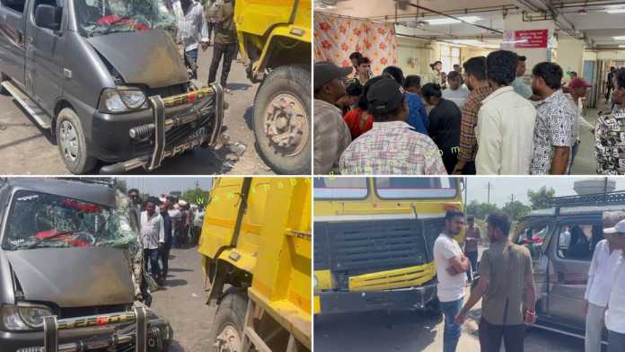 જામનગરમાં ઠેબા ચોકડીથી મહાપ્રભુજીની બેઠક તરફના માર્ગ પર આજે સવારે ગરબા રમાડી સ્કૂલના બાળકોને ઇકો વેનમાં મૂકવા જતા સમયે સામેથી રોંગ સાઇડમાં આવી રહેલા રેતી ભરેલા ડમ્પરે ઇકોને ઠોકર મારી હડફેટ લેતાં અકસ્માત સર્જાયો હતો. આ અકસ્માતમાં સ્કૂલના આઠ બાળકોને ઇજા પહોંચી હતી. જેમાં ચાર બાળકોને સામાન્ય ઇજા તથા બે બાળકોને વધુ ઇજા થઇ હતી. અકસ્માત બાદ ઇજાગ્રસ્ત બાળકોને તાત્કાલિક સારવાર માટે જી.જી. હોસ્પિટલમાં ખસેડવામાં આવ્યા હતા. સદ્નસીબે જાનહાનિ ટળી હતી, પરંતુ રેતી ભરેલા રોંગ સાઇડમાં આવી રહેલા ડમ્પર સામે પોલીસ કડક કાર્યવાહી કરે તેવી લોકમાંગણી ઉઠી છે.