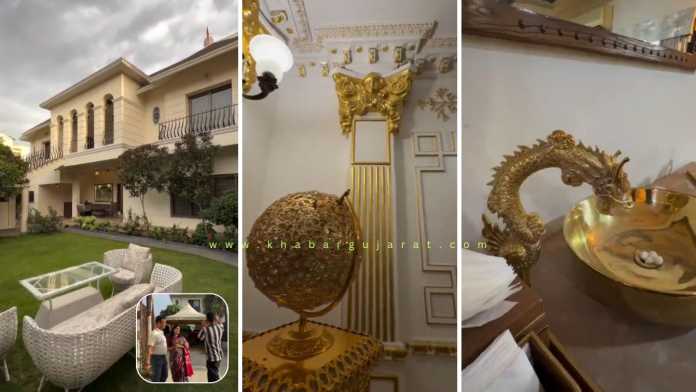 ઈન્દોરના એક વ્યક્તિએ 24 કેરેટ સોનાથી પોતાનું ઘર બનાવ્યું છે. તેના આલીશાન ઘરની એક ઝલક જોઇને તમારી આંખો પણ ચમકી જશે. એક બંગલા બને ન્યારા…. આલીશાન ઘર બનાવવાનું સ્વપ્ન દરેકનું હોય છે. તો સોનુ પહેરવું કે ખરીદવુ પણ હાલ એક સ્વપ્ન જેવું જ થઈ ગયું છે ત્યારે એક વ્યક્તિ કે જે સોનાનું ઘર બનાવે છે તે સાંભળીને આંખો પહોળઇ થઈ જાય છે ત્યારે ચાલો ઈન્દોરના એક વ્યક્તિ કે જેને 24 કેરેટ સોનાથી પોતાનું ઘર બનાવ્યું તે જોઇએ…