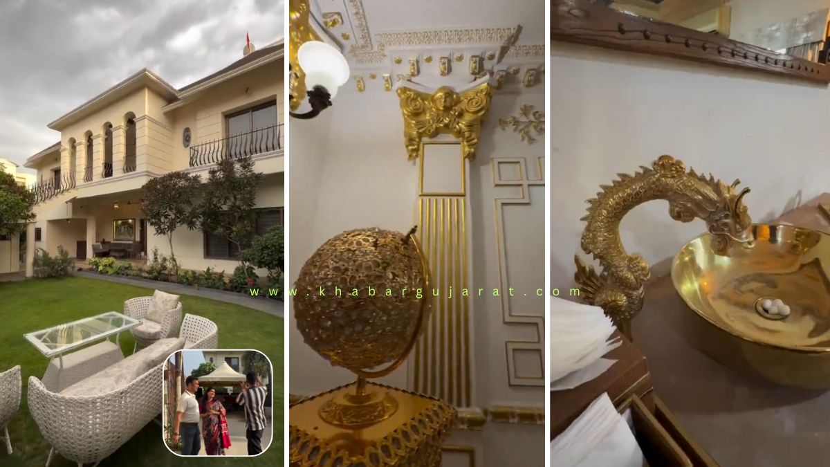 આ વીડિયો એક કન્ટેન્ટ ક્રિએટર દ્વારા તેના સોશિયલ મીડિયા હેન્ડલ પર પોસ્ટ કરવામાં આવ્યો છે. સૌ પ્રથમ ઘરના માલિકે જણાવ્યું કે, તેણે તેના ઘરની બહાર એક ગૌશાળા બનાવી છે જે સકારાત્મકતા લાવે છે. દરરોજ સવારે તે તેની પત્ની સાથે ઉઠીને સૌ પ્રથમ બાલ્કનીમાંથી ગૌમાતાના દર્શન કરે છે. ત્યારબાદ દંપતી કન્ટેન્ટ ક્રિએટરને અંદર લઇ ગયા જ્યાં તેમણે કહ્યું કે, તેમના ઘરમાં વપરાતું સોનુ 24 કેરેટ સોનુ છે ફર્નિચર હોય કે વોશબેસિન, ઇલેકટ્રીકલ સોકેટ હોય કે પછી તેમના ઘરમાં પાણીની ટાંકી બધુ જ વાસ્તવિક સોનાનું બનેલું છે. જે ખૂબ જ અદભૂત અને સુંદર લાગે છે. તેમના ઘરમાં 10 બેડરૂમ છે. ડાઈનિંગ એરિયામાં એક ફુવારો છે અને બહાર એક સુંદર બગીચો છે.