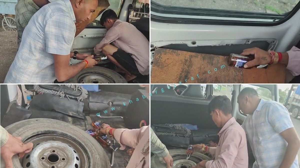 ઇંગ્લીશ દારૂ ઘૂસાડવાનો નવતર કિમિયો, કારના સ્પેરવ્હીલમાં દારૂની બોટલો…!! – VIDEO