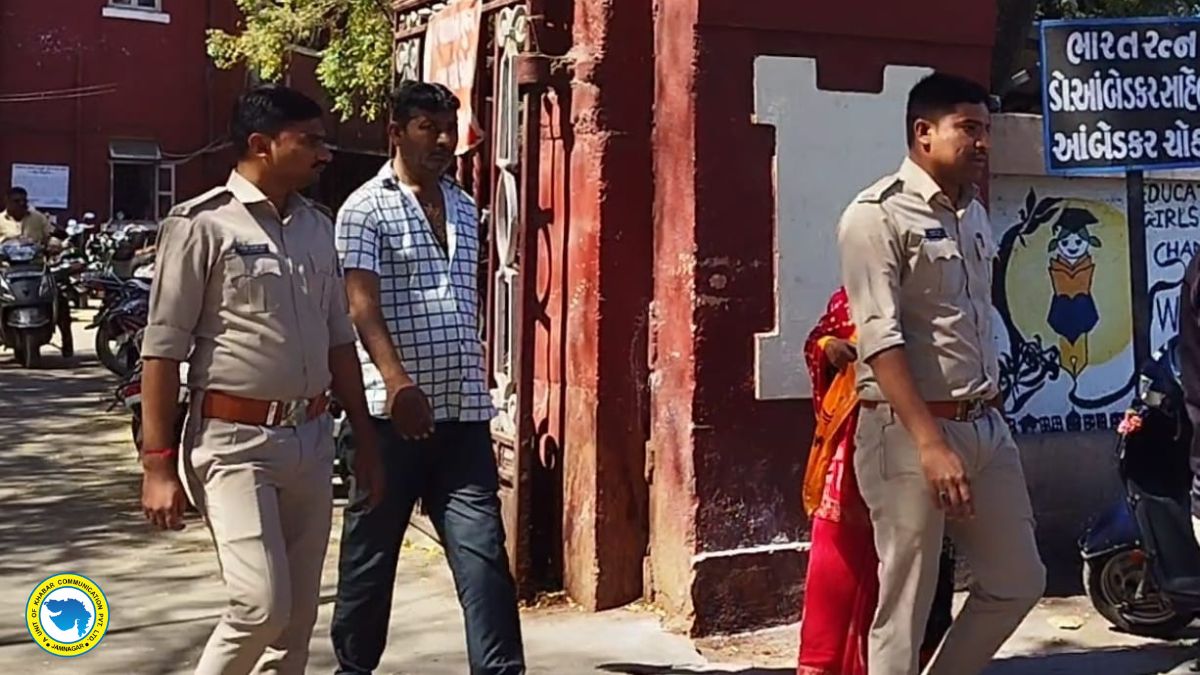 જામનગરની અદાલતમાં હત્યા તથા દારૂના કેસના આરોપીને મુદ્તમાં લાવતા જાપ્તામાં રહેલી પોલીસકર્મી સાથે આરોપીને હથકડી ન પહેરાવવા પોલીસ સાથે ઝપાઝપી કરવા અને પોલીસની ફરજમાં રૂકાવટ કરવા અંગે કેદી સહિત બે શખ્સો વિરૂધ્ધ પોલીસે ગુનો નોંધી વધુ કાર્યવાહી હાથ ધરી હતી.