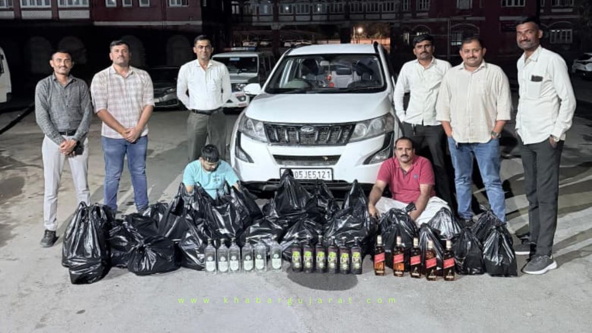 દરમ્યાન એલસીબીની ટીમએ જીજે05 જેઇ 5121 નંબરની એક્સયુવી કારને આંતરીને તલાશી લેતાં કારના ચોરખાનામાંથી પોલીસે રૂા. 3,66,120ની કિંમતની ઇંગ્લીશ દારૂની 408 બોટલ અને રૂા. 40 હજારની કિંમતના ત્રણ મોબાઇલ ફોન તથા રૂપિયા ચાર લાખની કિંમતની એક્સયુવી કાર સાથે કપિલ કિશનપાલ સાકલા (ઉ.વ.30) (ધંધો જમીન લે-વેંચ, રહે. ભૌડસી ગામ, બાબા મોહલ્લા, તા. સોહના, જિ. ગુડગાવ, હરિયાણા રાજ્ય) અને ક્રિપાશંકર ઓમકારનાથ શર્મા (ઉ.વ.57, રહે. હરિહર સરાઇ, ગરથોલિયા ગામ, તા. અમેઠી, ઉત્તરપ્રદેશ) નામના બે શખ્સને દબોચી લઇ કુલ રૂા. 8,06,120નો મુદામાલ કબ્જે કરી પૂછપરછ હાથ ધરતાં આ દારૂનો જથ્થો ગુડગાવ ઇંગ્લીશ-વાઇન શોપ નામની દુકાનેથી ખરીદ કરીને લઇ આવ્યા હતા અને જામનગરના કિશાન ચોકમાં રહેતાં વિશાલ પ્રવીણ માવને આપવા માટે લઇ આવ્યાની કેફિયતના આધારે એલસીબીએ ત્રણ શખ્સો વિરૂદ્ધ ગુનો નોંધી વિશાલની શોધખોળ માટે ચક્રો ગતિમાન કર્યા હતા.
