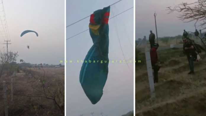 પ્રાપ્ત વિગતો અનુસાર, એક યુવક પેરાશૂટની મદદથી અંદાજે 100 ફૂટ જેટલી ઊંચાઈએ ગયો હતો. જો કે કોઈ કારણસર પેરાશૂટનું સંતુલન બગડતાં તે નીચે ઉતરવા લાગ્યો હતો. આ દરમિયાન પેરાશૂટ નજીક આવેલા વીજ વાયર સાથે ફસાઈ જતા યુવક નિયંત્રણ ગુમાવીને જમીન પર પટકાયો હતો. સદનસીબે, આ ઘટનામાં કોઈ જાનહાની થઈ નથી અને યુવક ગંભીર રીતે ઈજાગ્રસ્ત પણ થયો નથી, જે ખરેખર ચમત્કાર સમાન માનવામાં આવી રહ્યું છે.