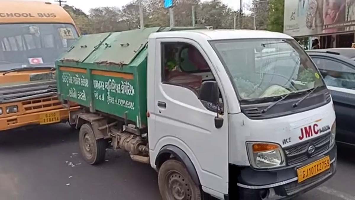 Video : જામનગરમાં કચરાની ગાડી અને સ્કૂલ બસ વચ્ચે અકસ્માત
