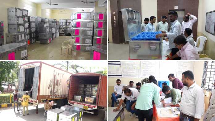 જામનગર જિલ્લામાં યોજાનારી સ્થાનિક સ્વરાજ્યની સામાન્ય ચૂંટણી-2026ને અનુલક્ષીને જિલ્લા સેવા સદનના સ્ટ્રોંગરૂમ ખાતેથી ઈવીએમ ફાળવણી પ્રક્રિયા પૂર્ણ કરવામાં આવી છે. જિલ્લા ચૂંટણી અધિકારી પી.બી.પંડ્યાના માર્ગદર્શન હેઠળ સ્ટ્રોંગરૂમમાંથી કડક સુરક્ષા વ્યવસ્થામાં EVM મશીનો બહાર કાઢી રેન્ડમાઇઝેશન પ્રક્રિયા દ્વારા તમામ મતદાન મથકો માટે કુલ 2137 મશીનોની ફાળવણી કરવામાં આવી હતી.