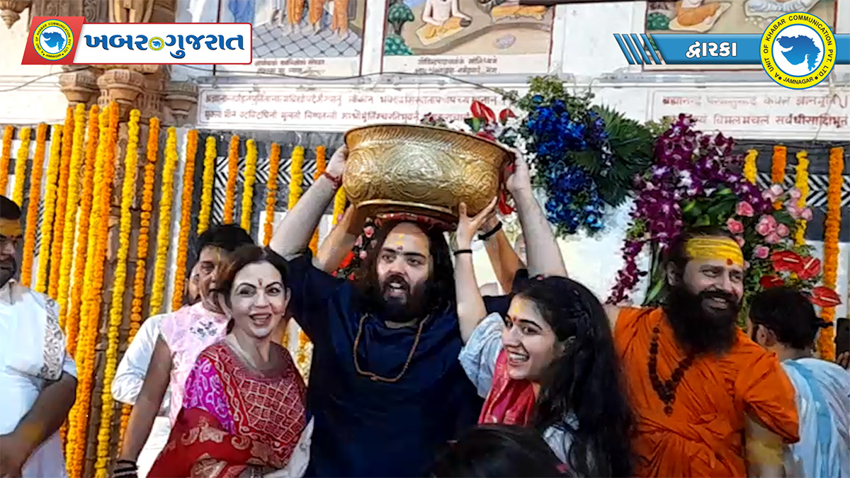 જામનગર થી દ્વારકા સુધીની છેલ્લા 10 દિવસની પદયાત્રા પૂર્ણ કરી રિલાયન્સ ગ્રુપના અગ્રણી અનંત અંબાણીએ સહ પરિવાર દ્વારા આજે ભગવાન દ્વારકાધીશજી ના આશીર્વાદ પ્રાપ્ત કરી પદયાત્રા પૂર્ણ કરી.શારદામઠમાં બ્રહ્મચારી નારાયણાનંદજી ની વિશેષ ઉપસ્થિતિમાં ગુગળી બ્રાહ્મણ જ્ઞાતિ આચાર્ય વત્સલભાઈ પુરોહિત દ્વારા વિધિવિધાનથી નૂતન ધજાજીનું પૂજન કરાવવામાં આવ્યું.તીર્થગોર કપિલભાઈ પાઢ સહ પરિવાર તેમજ કપિલભાઈ વાયડા સહપરિવાર દ્વારા આશીર્વાદ આપવામાં આવ્યા.