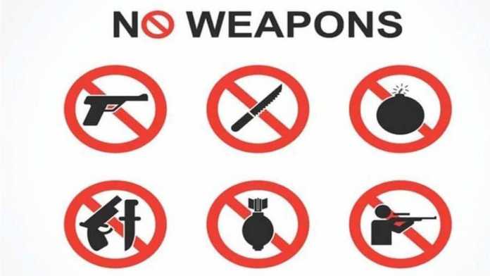 જામનગર જિલ્લામાં હાલની સાંપ્રત પરિસ્થિતિને ધ્યાનમાં રાખતા અને જિલ્લામાં કાયદો- વ્યવસ્થાની પરિસ્થિતિ જળવાઈ રહે અને કોઈ અનિચ્છનિય બનાવ ન બને, તે માટે તકેદારી રાખવી જરૂરી જણાય છે. તેથી સમગ્ર જિલ્લામાં આગામી તા. 09/06/2023 સુધી કોઈપણ વ્યક્તિએ શસ્ત્ર, દંડા, તલવાર, ભાલા, ધોકા, છરી, લાકડી, લાઠી, શારીરિક ઇજા પહોંચાડી શકે તેવા કોઈપણ પ્રકારના સાધન, કોઈપણ પ્રકારના ક્ષયકારી કે સ્ફોટક દારૂગોળો જેવા પદાર્થો, પથ્થરો, ફેંકી શકાય તેવી વસ્તુઓ, ધકેલવાના યંત્રો, મનુષ્ય અથવા તેના શબ, આકૃતિઓ અને પૂતળાં દેખાડવા કે બાળવા નહીં.