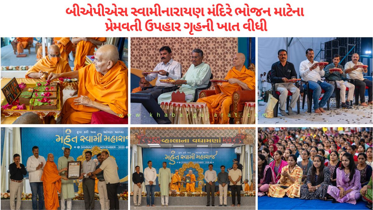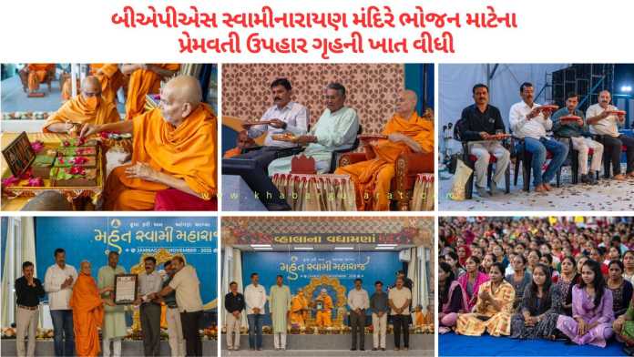 બીએપીએસ સ્વામીનારાયણ મંદિરે ભોજન માટેના પ્રેમવતી ઉપહાર ગૃહની ખાત વીધી – VIDEO