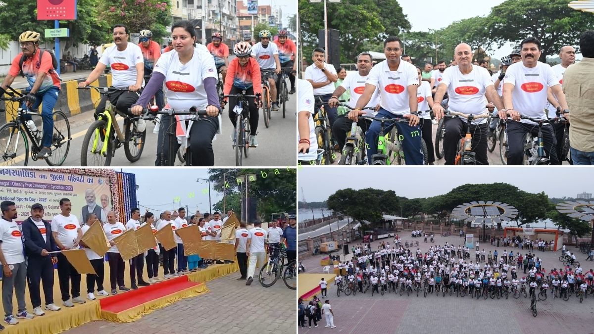 રાષ્ટ્રીય ખેલ દિવસની ઉજવણીના ભાગરૂપે જામનગર શહેરમાં રમતગમત અને શારીરિક સ્વાસ્થ્યના મહત્વ અંગે જાગૃતિ ફેલાવવા માટે વિશાળ સાઈકલ રેલીનું આયોજન કરવામાં આવ્યું હતું. “ઘર ઘર સુધી સ્પોર્ટ્સ” તેમજ “સન્ડે ઓન સાઇકલ”ના સંદેશા સાથે યોજાયેલી આ રેલીમાં જામનગર જિલ્લાની વિવિધ સરકારી કચેરીઓ, સંસ્થાઓ અને મોટી સંખ્યામાં નાગરિકોએ ઉત્સાહભેર ભાગ લીધો હતો.
