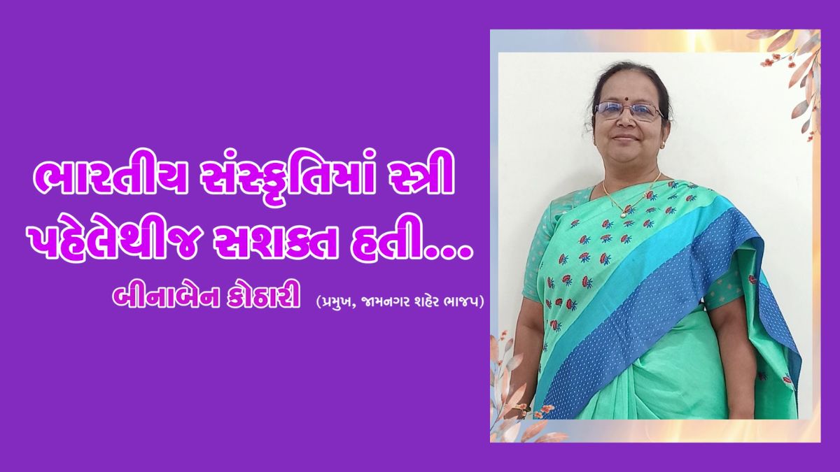 8 માર્ચ, ઇન્ટરનેશનલ વુમન્સ ડે નિમિતે ખબર ગુજરાત વિવિધ ક્ષેત્રોમાં કામ કરી રહેલા મહિલાઓને બિરદાવી રહ્યું છે, તે અંતર્ગત જામનગર શહેર ભાજપના નવનિયુક્ત પ્રમુખ બીનાબેન કોઠારી સાથે ખબર ગુજરાતની ખાસ વાતચીત.