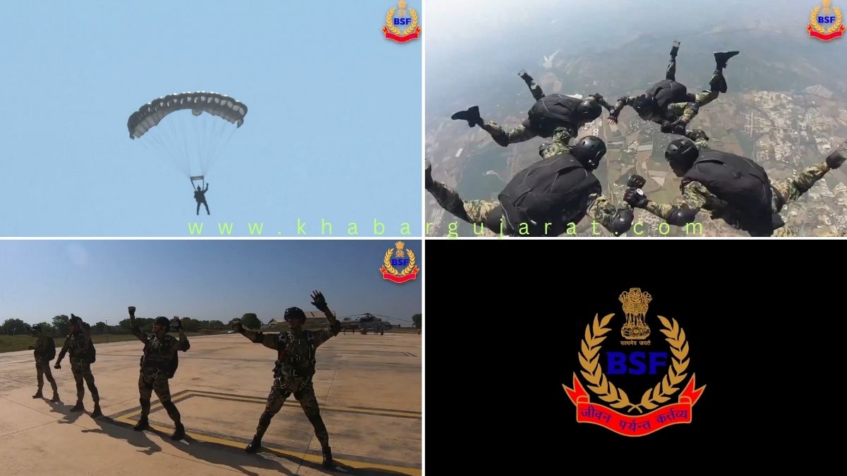 ભારતમાં સરંક્ષણ ક્ષેત્રે પ્રથમ સ્થાન ધરાવતા બોર્ડેર સીક્યુરીટી ફોર્સ ( BSF) આ વર્ષે ૬૧ માં સ્થાપના દિવસ ની ઉજવણી કરી રહ્યા છે .ત્યારે ભુજમાં ડાયમડ જ્યુબીલી ઉજવણી 2025અંતર્ગત BSF એ પ્રથમ વખત સ્કાયડાઇવિંગ પ્રદર્શન કય્રુ હતું જેના દિલધડક દ્રશ્યો જોઇને રોમ રોમમાં ગૌરવની લાગણી થઇ જાય છે.