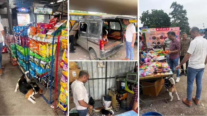 એસ.ઓ.જી.ના પી.આઈ. બી.એન. ચૌધરીની સૂચનાથી પીએસઆઇ એસ પી ગોહિલ એન તથા એ.વી. ખેર ઉપરાંત એસ.ઓ.જી.ની સમગ્ર ટુકડી ડોગ હેંગલર સોયબભાઈ શમાની ટીમને સાથે રાખીને શહેરના અલગ અલગ વિસ્તારોમાં ઘૂમી હતી.