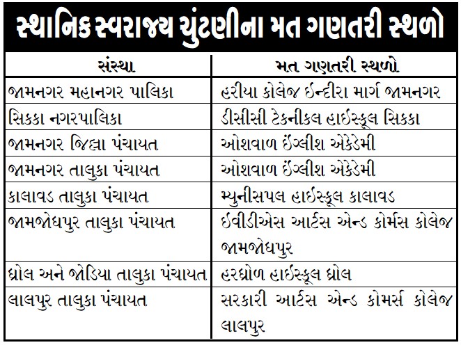 જામનગર મહાનગરપાલિકા સહિતની સ્થાનિક સ્વરાજ્યની ચુંટણીના મતદાનને આજે ગણતરીના દિવસો બાકી રહ્યા છે. આવતીકાલથી પ્રચારના ભુંગળા બંધ થઇ જશે. 26 એપ્રિલે સવારના 7 વાગ્યાથી સાંજે 6 વાગ્યા સુધી મતદાન યોજાનાર છે. તેમજ તા.28 એપ્રિલના મત ગણતરી હાથ ધરાશે. આ મત ગણતરીનો 28 એપ્રિલે સવારના 9 વાગ્યાથી પ્રારંભ થશે ત્યારે જામનગર જિલ્લા ચુંટણી અધિકારી અને જિલ્લા કલેકટરની આગેવાની હેઠળ તંત્ર દ્વારા તમામ તૈયારીઓને આખરી ઓપ અપાઇ રહ્યો છે. ગઇકાલે જિલ્લા ચુંટણી અધિકારી દ્વારા મત ગણતરી સ્થળની મુલાકાત લેવામાં આવી હતી.