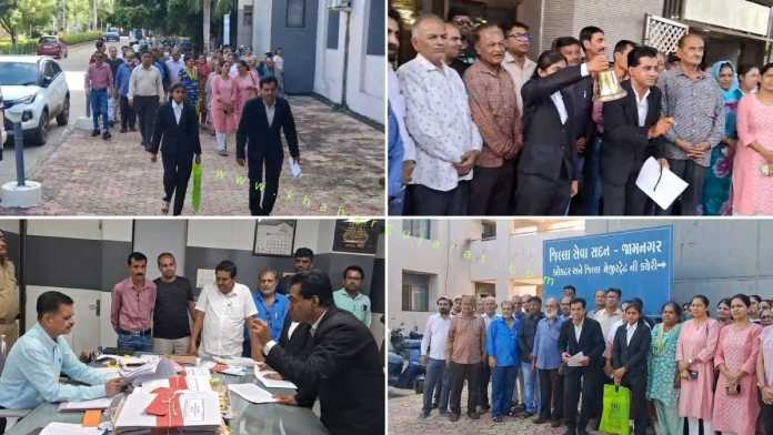 નંદધામ સોસાયટીના કોમન પ્લોટમાં દબાણ દૂર કરવા અંગે વિસ્તારના નિવાસીઓ દ્વારા કલેકટર કચેરી ખાતે આવેદનપત્ર પાઠવી રજૂઆત કરવામાં આવી હતી. વકીલ રહેવાસીઓ સાથે કલેકટર કચેરી ખાતે પહોંચી ઘંટ વગાડી નવતર વિરોધ સાથે આવેદનપત્ર પાઠવવામાં આવ્યું હતું.