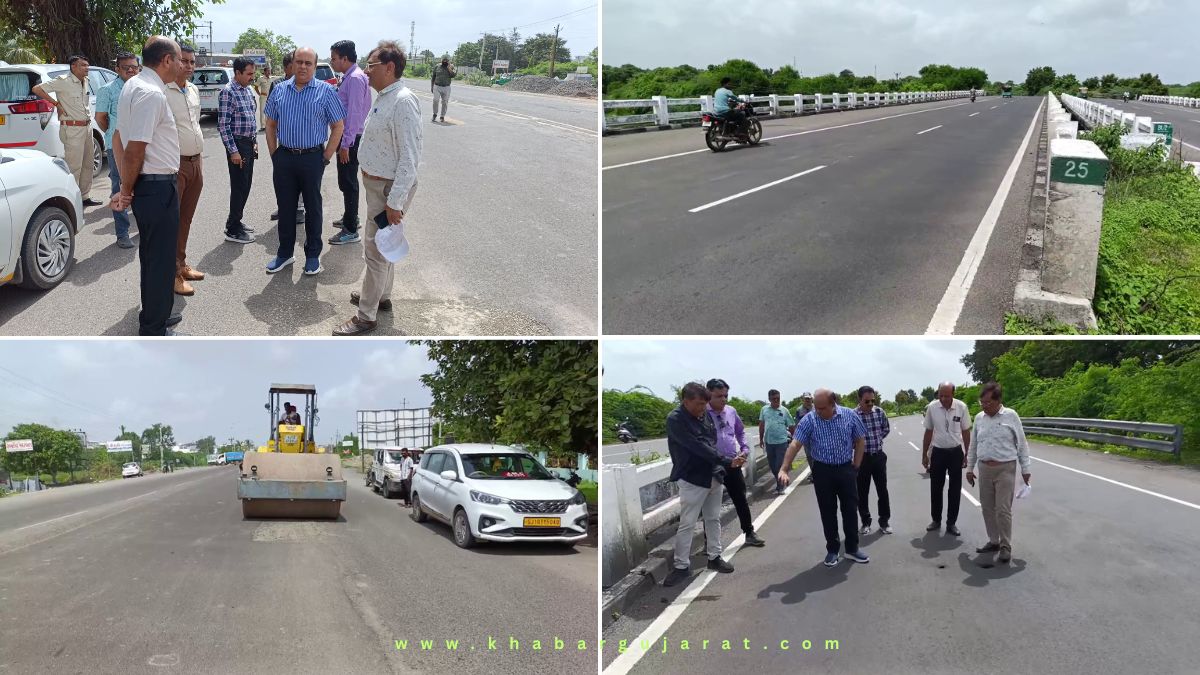 રાજકોટ રોડ બાદ સમગ્ર ટુકડી જામનગરના કાલાવડ ધોરીમાર્ગ પર મહાપ્રભુજીની બેઠકથી આગળ તરફ જતા અલગ અલગ બ્રિજ વગેરેના નિરીક્ષણની કામગીરી હાથ ધરવામાં આવી છે.આ તકે ડીએમસી દેવેન્દ્રસિંહ ઝાલા, સિટી ઇજનેર ભાવેશ જાની, કંટ્રોલિંગ અધિકારી મુકેશ વરણવા, ઉપરાંત ટીપીઓ શાખા ના અધિકારીઓની ટીમ એસ્ટેટ શાખા અને સોલિડ વેસ્ટ શાખાની ટીમ પણ જોડાઈ હતી, અને બારીકાઈથી સર્વે કરવામાં આવી રહ્યું છે. જામનગર મહાનગરપાલિકાના કમિશનર ડી.એન. મોદીએ શહેરના મુખ્ય રોડ પર પરિભ્રમણ કર્યું હતું, અને વરસાદના કારણે ક્યાં રોડ તૂટી ગયા છે, અથવા તો તેમાં ખાડા બની ગયા છે, જેની પણ સર્વેની કામગીરી હાથ ધરી લેવામાં આવી હતી. જ્યાં રોડ તૂટેલા છે, તે તમામ સ્થળોએ તાત્કાલિક અસરથી પેચ વર્ક અથવા તો રોડ મરામતની કામગીરી કરી લેવા માટેની તાકીદ ની સુચના આપી હતી.