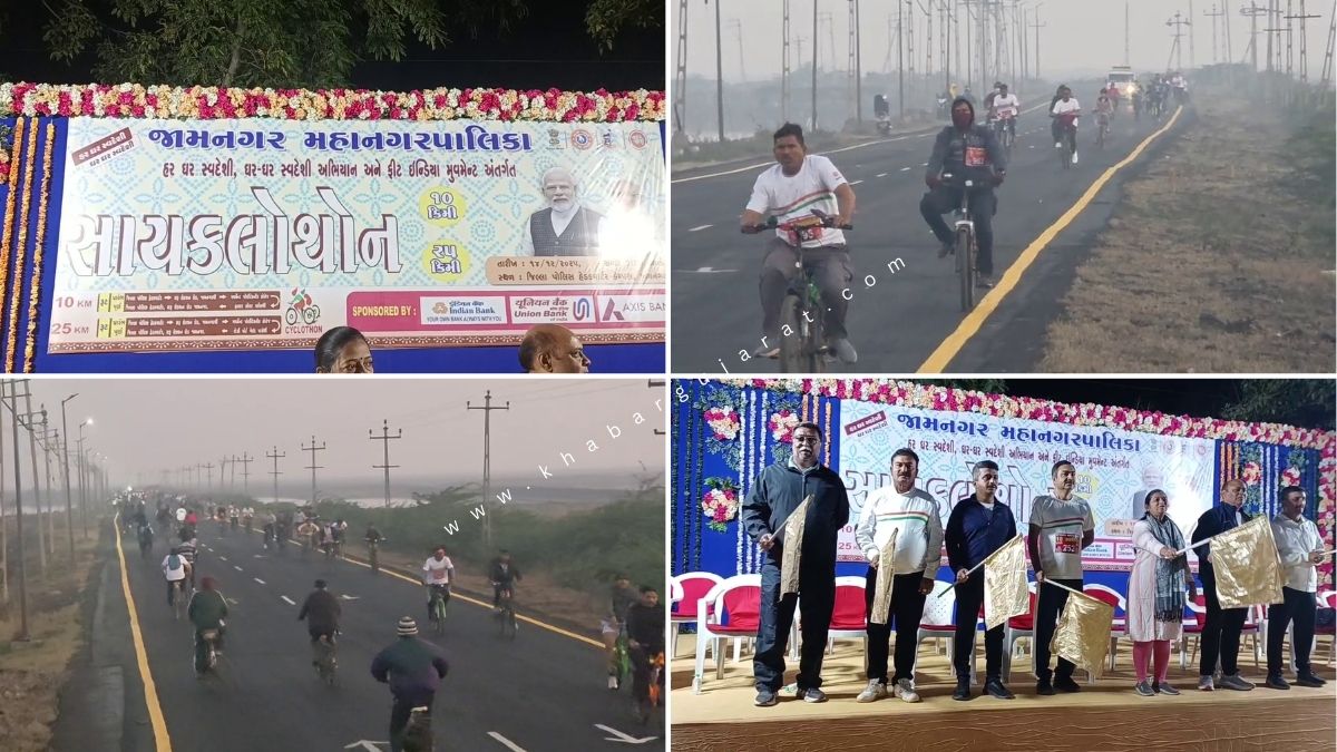 હર ઘર સ્વદેશી, ઘર-ઘર સ્વદેશી અભિયાન અને ફીટ ઇન્ડિયા મૂવમેન્ટ અંતર્ગત જામનગર મહાનગરપાલિકા દ્વારા ગઇકાલે સાયક્લોથોન ઇવેન્ટનું આયોજન કરવામાં આવ્યું હતું.