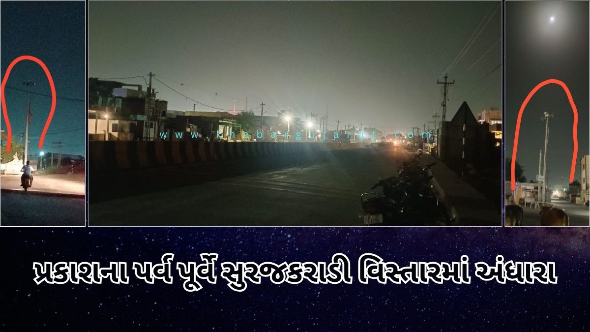 હાલ માં જ નવરાત્રિ તહેવાર પુરો થયો અને દિપાવલી નવા વર્ષ ઉમંગ ઉત્સાહ અને ઉજાસ નાં તહેવારો આવી રહ્યાં છે ત્યારે સુરજકરાડી ની હાઈવે રોડ મુખ્ય બજાર ઉપરાંત સોસાયટી,ગામતળ, ઉધોગનગર, કૃષ્ણનગર, શક્તિનગર, ગણેશપુરા વિસ્તારમાં સ્ટ્રીટ લાઈટનાં ધાંધિયા છે. અમુક વિસ્તારોમાં અડધાથી વધુ સ્ટ્રીટ લાઈટ બંધ હાલતમાં છે. હાઇવે રોડ ઉપર લાખોનાં ખર્ચે ઊભા કરેલાં લાઈટનાં ટાવરોમાં એક પણ લાઈટ ચાલુ હાલતમાં નથી. શાકમાર્કેટ અને મધુરમ પાસે આવેલા બન્ને લાઈટ ટાવર શોભાનાં ગાઠીયા સમાન ઉભા છે.
