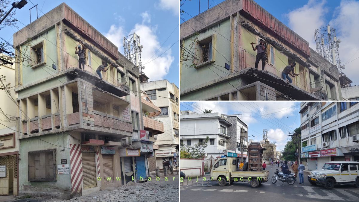 જામનગરમાં ગુરૂદ્વારા નજીક ઈમારતના જર્જરિત ભાગનું ડિમોલીશન