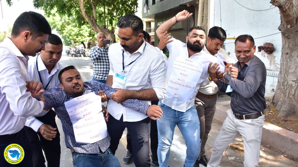 જામનગરમાં તાજેતરમાં મનિષ બુચ દ્વારા વિદ્યાર્થીની સાથે થયેલ દુષ્કર્મના કેસમાં કડક કાર્યવાહીની માગ સાથે જામનગર એનએસયુઆઇના કાર્યકરો જામનગર આવેલા રાજ્યપાલને રજૂઆત કરવા પહોંચ્યા હતાં. જ્યાં રજૂઆત કરે તે પૂર્વે જ એનએસયુઆઇના કાર્યકરોની એસઓજી દ્વારા અટકાયત કરવામાં આવી હતી.