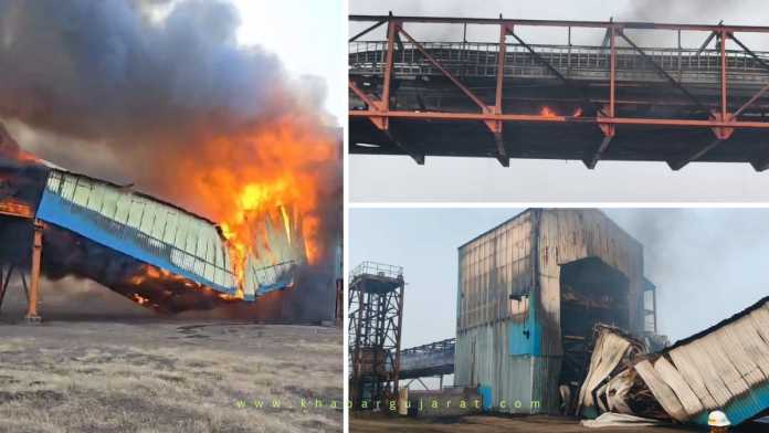 ખંભાળિયા નજીક આવેલી એસ્સાર કંપનીમાં કોલસા સપ્લાય કરતી કન્વર્ટર બેલ્ટમાં અચાનક ભીષણ આગ લાગી હતી. કોલસામાં આગ લાગતા કર્મચારીઓમાં નાસભાગ મચી ગઈ હતી. જાહેર માર્ગ પરથી આગના ગોટેગોળા નજરે ચડતા લોકોમાં ચકચાર મચી હતી, જ્યારે આસપાસના વિસ્તારોમાં ધુમાડાના ગોટેગોટા છવાઈ ગયા હતા.