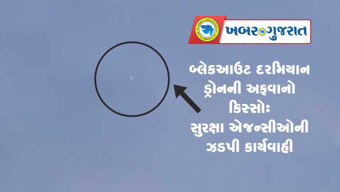 જામનગરમાં ગુલાબનગર અને જેસીઆર મોલ પાસે બ્લેકઆઉટ દરમિયાન ડ્રોન દેખાયા હોવાની જાણ સ્થાનિકોએ જિલ્લા ડિઝાસ્ટર કંટ્રોલ રૂમ અને પોલીસ કંટ્રોલ રૂમમાં કરી, જેને પગલે સુરક્ષા એજન્સીઓ તાત્કાલિક દોડી ગઈ. પ્રાથમિક તપાસમાં માત્ર અફવા હોવાનું સ્પષ્ટ થયું, કારણ કે આકાશમાં વીદળો વચ્ચે દેખાતા તારા લોકોએ ડ્રોન સમજીને જાણ કરી હતી. તંત્રએ લોકોને અફવાઓથી દૂર રહેવા અપીલ કરી છે.