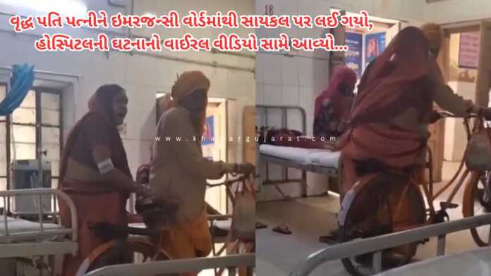 એક વૃદ્ધ પુરુષ પોતાની પત્નીને ઇમરજન્સી વોર્ડમાંથી સાયકલ પર ઘરે લઈ જતા દેખાય છે. જ્યારે હોસ્પિટલો સામાન્ય રીતે દર્દીઓની સુવિધા માટે સ્ટ્રેચર અથવા વ્હીલચેરનો ઉપયોગ કરે છે, ત્યારે એક વૃદ્ધ વ્યક્તિ હોસ્પિટલની અંદર સાયકલ લઈને આવે છે તે સિસ્ટમ પર ગંભીર પ્રશ્નો ઉભા કરે છે. આ ઘટના રાજસ્થાનના ડીગ જિલ્લા હોસ્પિટલમાં બની રહી હોવાનું કહેવાય છે.