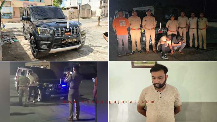 આ સમગ્ર પ્રકરણની પોલીસ સૂત્રો દ્વારા જાહેર કરવામાં આવેલી વિગત મુજબ દેવભૂમિ દ્વારકા જિલ્લા પોલીસ વડા નિતેશ પાંડેયની સૂચનાથી અહીંના ડીવાયએસપી ડો. હાર્દિક પ્રજાપતિના માર્ગદર્શન હેઠળ જિલ્લા ટ્રાફિક શાખા દ્વારા ગતરાત્રે કોમ્બિંગ નાઈટ રાઉન્ડનું આયોજન કરવામાં આવ્યું હતું જેમાં ટ્રાફિક પી.એસ.આઈ. વી.એમ. સોલંકી તેમજ ટ્રાફિક શાખાના જવાનોએ ખંભાળિયા જામનગર હાઈવે પર અત્રેથી આશરે 6 કિલોમીટર દૂર ધરમપુર ટોલનાકા પાસે પહોંચતા આ માર્ગ પરથી પસાર થતી જી.જે. 38 બી.એફ. 5050 નંબરની કાળા કલરની સ્કોર્પિયો કારને જોતા આ કારમાં આગળના ભાગે બ્લુ અને લાલ કલરની એલઈડી ફ્લેસીંગ લાઈટ તેમજ સાયરન જોવા મળ્યું હતું.