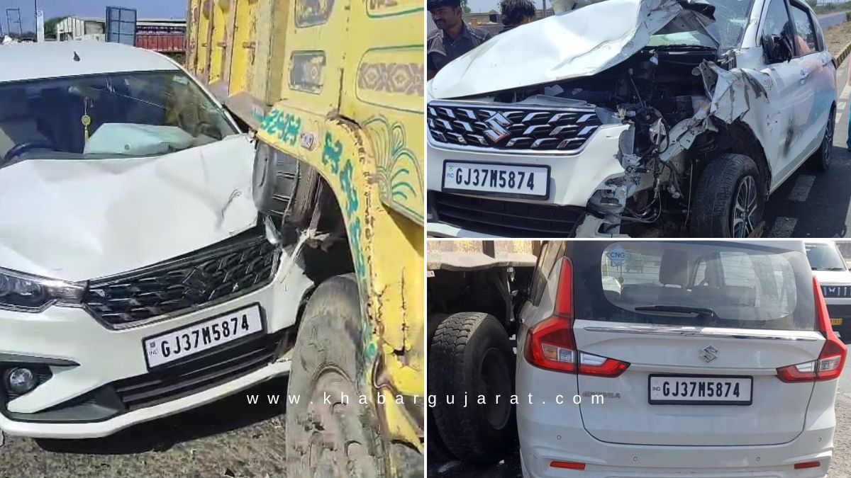 દેવભૂમિ દ્વારકા જિલ્લાના ચોખંડા ગામમાં રહેતો યુવાન તેની અર્ટીગા કારમાં જામનગર નજીક આવેલી ઠેબા ચોકડી પાસેથી પસાર થતા હતા તે દરમિયાન પૂરપાટ બેફીકરાઇથી આવી રહેલા ડમ્પરે કારને ઠોકર મારતા અકસ્માતમાં ચાર જેટલા વ્યક્તિઓને નાની મોટી ઈજાઓ પહોંચી હતી.