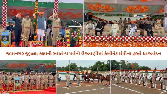 જામનગરના પોલીસ પરેડ ગ્રાઉન્ડ ખાતે 79મા સ્વાતંત્ર્ય પર્વની ભવ્ય અને ગૌરવપૂર્ણ ઉજવણી કરવામાં આવી હતી.જેમાં રાજ્યના કૃષિ, પશુપાલન, ગૌસંવર્ધન, ગ્રામ ગૃહ નિર્માણ અને ગ્રામ વિકાસ વિભાગના કેબિનેટ મંત્રી રાઘવજીભાઈ પટેલે ઉપસ્થિત રહી રાષ્ટ્રધ્વજ ફરકાવી સલામી ઝીલી હતી.