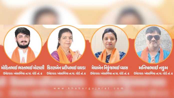 ખંભાળિયાના રાજકારણમાં પ્રથમ વખત અને અતિ ચર્ચાસ્પદ બની ગયેલા આ પ્રકરણમાં ખંભાળિયા નગરપાલિકાની ચૂંટણી માટે વોર્ડ નંબર 6 માં ભાજપના 4, કોંગ્રેસના બે અને આમ આદમી પાર્ટીના 3 મળીને મળે કુલ 9 ઉમેદવારોએ પોતાની ઉમેદવારી નોંધાવી હતી. આજરોજ બુધવારે ફોર્મ પરત ખેંચવાના અંતિમ દિને ભાજપ સિવાયના તમામ પાંચ ઉમેદવારોએ પોતાના ઉમેદવારી પત્રો પરત ખેંચી લેતા વોર્ડ નંબર 6 માં ભાજપની આખી પેનલ બિનહરીફ થઈ જવા પામી છે.