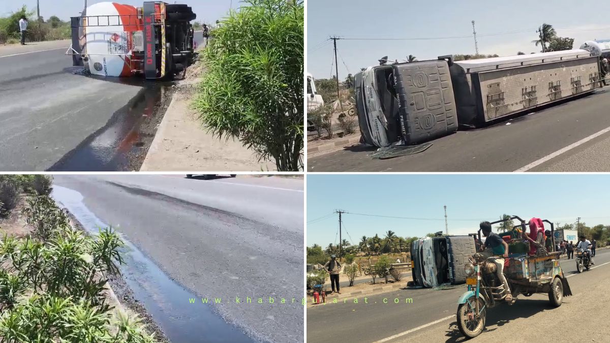 Homeરાજ્યજામનગરજામનગર-રાજકોટ હાઈવે પર હોટલ હાઈવે 10 પાસે ફ્યુઅલ ટેન્કર પલટ્યું, પ્રવાહી રસ્તા... જામનગરવિડિઓ જામનગર-રાજકોટ હાઈવે પર હોટલ હાઈવે 10 પાસે ફ્યુઅલ ટેન્કર પલટ્યું, પ્રવાહી રસ્તા પર રેલાયું – VIDEO April 21, 2026 Share FacebookTwitterWhatsAppTelegram View this post on Instagram A post shared by Khabar Gujarat (@khabar.communication) - Advertisement - Share FacebookTwitterWhatsAppTelegram Previous articleજામનગરમાં ટ્રાફિકથી ધમધમતા માર્ગ પર સજુબા સ્કૂલ નજીક વીજ ટ્રાન્સફોર્મરમાં આગ – VIDEONext articleબેડેશ્વરમાંથી ગેરકાયદેસર ગેસના બાટલામાં રિફિલિંગ કરતો શખ્સ ઝડપાયો RELATED ARTICLES જામનગર જેકી શ્રોફ જામનગર એરપોર્ટ પહોંચ્યા, વનતારા જવા રવાના… – VIDEO April 21, 2026 જામનગર બેડેશ્વરમાંથી ગેરકાયદેસર ગેસના બાટલામાં રિફિલિંગ કરતો શખ્સ ઝડપાયો April 21, 2026 જામનગર જામનગરમાં ટ્રાફિકથી ધમધમતા માર્ગ પર સજુબા સ્કૂલ નજીક વીજ ટ્રાન્સફોર્મરમાં આગ – VIDEO April 21, 2026 - Advertisment - Most Popular કેશોદના શખ્સને જામગરી બંદૂક સાથે એસઓજીએ ઝડપી લીધો April 21, 2026 બાઇક નિરાંતે ચલાવવાનું કહેતાં યુવાન ઉપર બે શખ્સોએ કર્યો હુમલો April 21, 2026 કલ્યાણપુર પાસે બોલેરોનું ટાયર ફાટયું, ચાલકનું મોત April 21, 2026 જેકી શ્રોફ જામનગર એરપોર્ટ પહોંચ્યા, વનતારા જવા રવાના… – VIDEO April 21, 2026 Load more