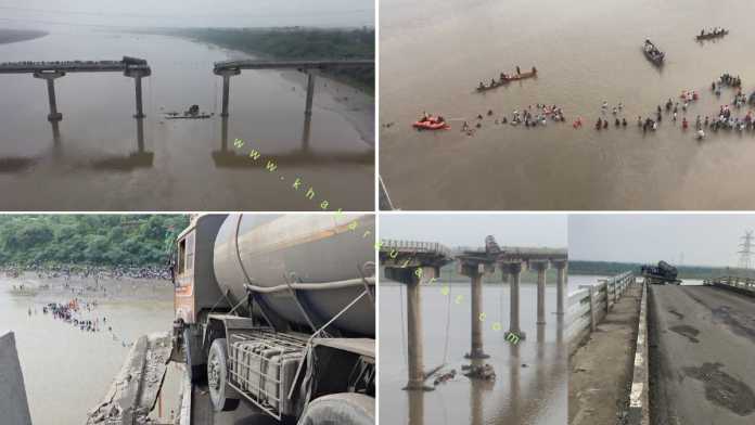 આજે વહેલીસવારે આણંદ અને વડોદરા જિલ્લાને જોડતો વર્ષો જૂનો ગંભીરા બ્રિજ છે જેના પરથી ખૂબ જ મોટા પ્રમાણમાં વાહનોની અવર-જવર થાય છે હજારોની સંખ્યામાં લોકોની આ બ્રિજ પરથી અવરજવર થાય છે તે તૂટી પડયો ત્યારે પાંચ જેટલા વાહનો નદીમાં ખાબકયાના સમાચારો સામે આવ્યા છે મોટા પ્રમાણમાં જાનહાની થઈ હોવાની શકયતાઓ દર્શાવાઈ રહી છે આ તકે વડોદરા તંત્ર બચાવ કામગીરી શરૂ કરી દીધી છે. આ મામલે કલેકટરે જાણકારી આપી હતી. બ્રિજ ધરાશાયી થવાના પગલે ટ્રાફિક જામની સમસ્યાઓ સર્જાઇ હતી. જેના પગલે તંત્ર એ તાત્કાલિક ટ્રાફિકની સમસ્યાના નિવારણ માટેની કામગીરી પણ હાથ ધરવાની સ્થિતિ સામે આવી હતી. અચાનક બ્રિજ તૂટી પડતા આશરે પાંચ જેટલા વાહનો નદીમાં ખાબકયા છે. જ્યારે એક ટ્રક પણ લટકતી સ્થિતિમાં જોવા મળી રહ્યો છે. જ્યારે પાણીમાં પડેલા વાહનોમાંથી લોકોને બચાવવાની કામગીરી પણ તાત્કાલિક પોલીસ અને વહીવટી તંત્ર દ્વારા હાથ ધરવામાં આવી હતી.