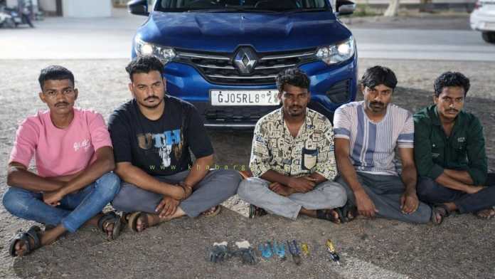 પોલીસે કારની તલાશી લેતાં કારમાંથી રૂા. 1,25,000ની કિંમતનો બળેલો 125 કિ.ગ્રા. ચોરાઉ કોપર વાયરનો જથ્થો મળી આવતાં પોલીસે રૂા. 20 હજારની કિંમતના ચાર મોબાઇલ ફોન, ચોરી કરવા માટે ઉપયોગમાં લીધેલા સાધનો, રૂા. 3 લાખની કિંમતની કાર સહિત કુલ રૂપિયા 4,45,170નો મુદામાલ કબ્જે કરી હુસેન ઉર્ફે લેંઘો અયુબ મેપાણી (ઉ.વ.26, રહે. સિક્કા, જિ. જામનગર), આરીફ ઇશા તાયાણી (ઉ.વ.20, રહે. સિકકા, જિ.જામનગર), અસ્લમ ઇશા તાયાણી (ઉ.વ.23, રહે. સિક્કા, જિ. જામનગર), આસિફ હારૂન મેપાણી (ઉ.વ.23, રહે. સિકકા, જિ. જામનગર) અને બશીર હનિફ ચૌહાણ (ઉ.વ.35, ધંધો : ભંગાર, રહે. બેડેશ્ર્વર, જિ. જામનગર) નામના પાંચ શખ્સોને દબોચી લઇ પૂછપરછ હાથ ધરી ધ્રોલ અને જોડિયા પોલીસ સ્ટેશનમાં નોંધાયેલા બે ગુનાનો ભેદ ઉકેલવામાં સફળતા મળી હતી. તેમજ આરોપી આરીફ ઇશા તાયાણી વિરૂઘ્ધ સિક્કામાં અગાઉ ચોરીનો એક ગુનો નોંધાયેલો છે.