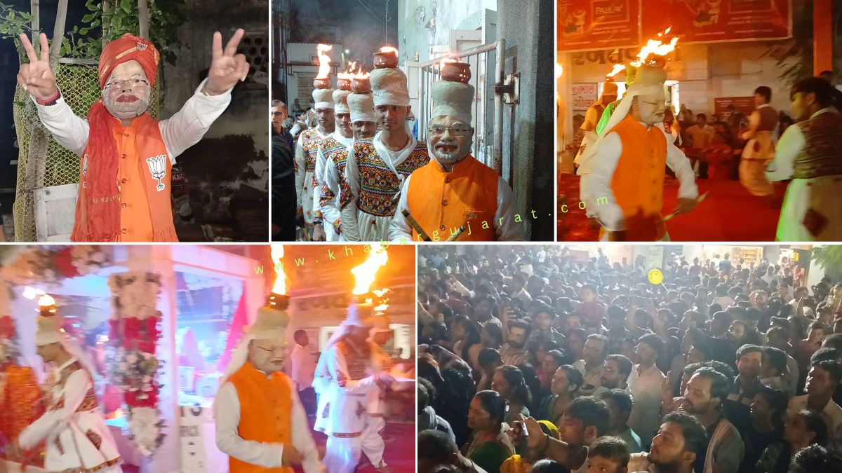 પંચેશ્વર ટાવર પાસે જયશ્રી ચામુંડા યુવક કુમારીકા ગરબી મંડળમાં આયોજન : યુવાનના વડાપ્રધાનના માસ્ક સાથે ગરબા