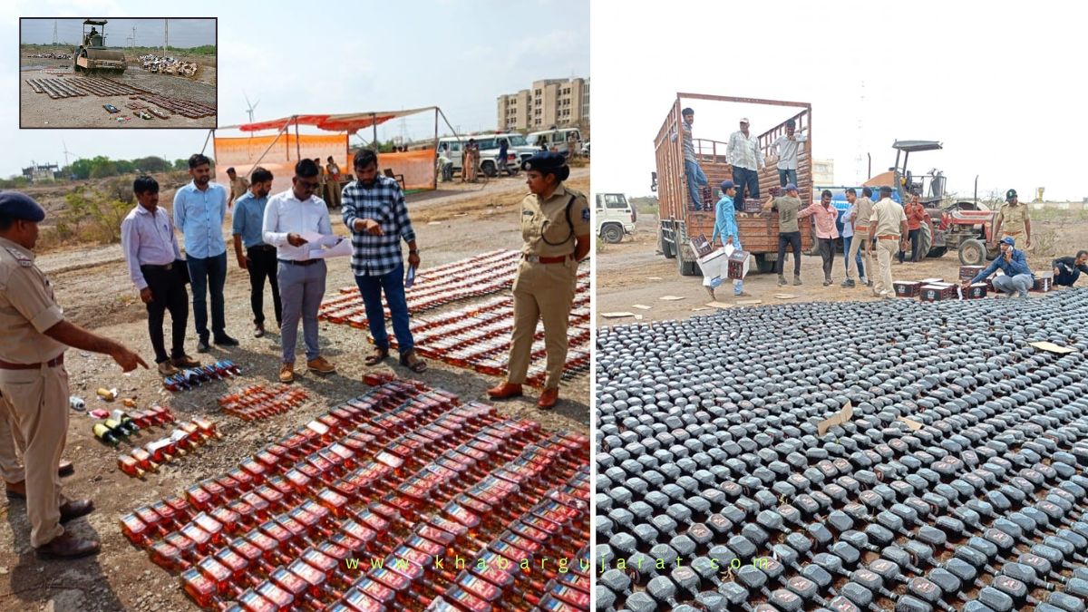 જામનગર જિલ્લાના લાલપુર વિભાગમાં આવેલા પોલીસ મથકોમાંથી ઝડપાયેલા દારૂના જથ્થાનો નાશ કરવા માટે સરકારી સમિતિના અઘ્યક્ષ એએસપી પ્રતિભાબેન અને લાલપુર સબ ડિવિઝનલ મેજિસ્ટ્રેટ એસ. જે. અસ્વાર તથા લાલપુર ઇન્ચાર્જ અને મેઘપર પીઆઇ પી. ટી. જયસ્વાલ તેમજ નશાબંધી અને આબકારી વિભાગના અધિકારી એસ. સી. વાળા, ઇન્ચાર્જ જામજોપુર પીઆઇ વી. એસ. પટેલ તથા શેઠવડાળા પોલીસ સ્ટેશનના અધિકારી અને કર્મચારીઓની ઉપસ્થિતિમાં ઝડપાયેલા રૂા. 52,46,367ની કિંમતની ઇંગ્લીશ દારૂની બોટલો, બીયરના ટીન અને ચપટા સહિતના જથ્થા ઉપર ઢાંઢર નદીના કાંઠે અદાલતના આદેશ અન્વયે સરકારી બૂલડોઝર ફેરવી આ જથ્થાનો નાશ કરવામાં આવ્યો હતો.