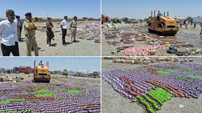 જામનગર શહેરના સિટી ‘એ’ અને સિટી ‘સી’ ડિવિઝન પોલીસ સ્ટેશન વિસ્તારમાંથી ઝડપાયેલા ગેરકાયદેસર દારૂની 12,698 બોટલ ઉપર આજે સવારે એરપોર્ટ નજીક સરકારી બૂલડોઝર ફરી વળ્યું હતું.