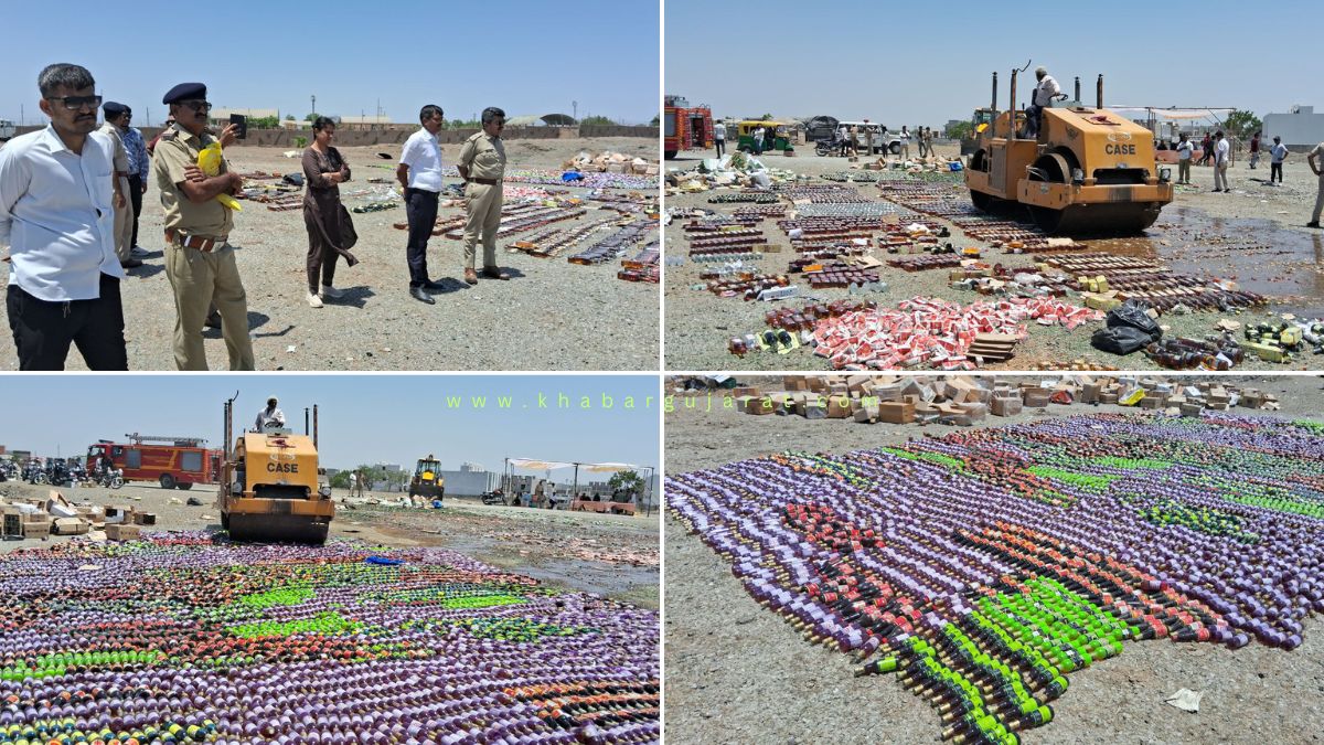 આ અંગની વિગત મુજબ જામનગર સબ ડિવિઝનલ મેજિસ્ટ્રેટના નેજા હેઠળ આજે સવારે સિવિલ એરપોર્ટ નજીક આવેલા સીઆઇએસએફ કમ્પાઉન્ડની દીવાલ પાસેના સરકારી ખરાબાની ખુલ્લી જગ્યામાં પોલીસ અધિકારીઓ તથા સ્ટાફની ઉપસ્થિતિ વચ્ચે શહેરના સિટી ‘એ’ ડિવિઝન પોલીસ વિસ્તારમાંથી ઝડપાયેલી રૂા. 22,06,975ની કિંમતની 7236 બોટલ તથા સિટી ‘સી’ ડિવિઝન પોલીસ સ્ટેશન વિસ્તારમાંથી ઝડપાયેલી રૂા. 12,87,524ની કિંમતની 3469 બોટલ તથા બેડી મરીન સહિતના પોલીસ સ્ટેશન વિસ્તારમાંથી ઝડપાયેલી દારૂની બોટલો મળી કુલ રૂા. 43,62,780ની કિંમતની 8128 દારૂની બોટલ, 2474 નંગ ચપલા અને 2096 નંગ બિયરના ટીન મળી કુલ 12,698 બોટલ તથા ટીન ઉપર સરકારી બૂલડોઝર ફેરવી દેવામાં આવ્યું હતું અને 43 લાખના દારૂના જથ્થાનો નાશ કરવામાં આવ્યો હતો.