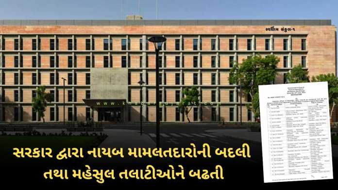 રાજ્ય સરકાર દ્વારા વિવિધ જિલ્લાઓમાં ફરજ બજાવતા 80 જેટલા નાયબ મામલતદારોની જિલ્લા ફેર બદલીના ઓર્ડર કર્યા છે. જેમાં જામનગરના 1 તથા દ્વારકાના 12 નાયબ મામલતદારોની પણ બદલી કરવામાં આવી છે. તેમજ રાજ્યના 800 જેટલા મહેસુલ તલાટીને નાયબ મામલતદાર તરીકે બઢતી આપવામાં આવી છે.