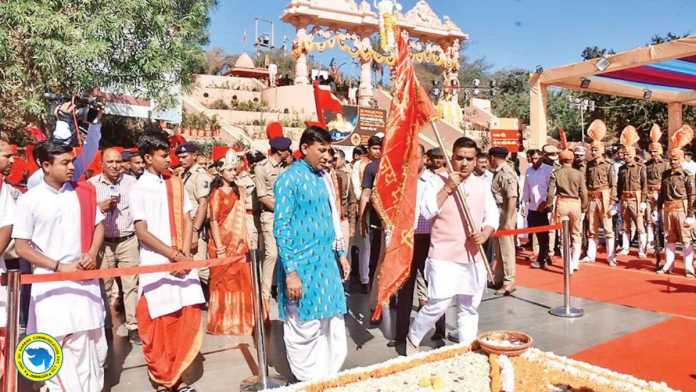 યાત્રાધામ અંબાજીમાં ચાલી રહેલા ધર્મ અને સંસ્કૃતિના સમન્વય સમાન શ્રી 51 શક્તિપીઠ પરિક્રમા મહોત્સવના ચોથા દિવસે ગૃહ રાજ્યમંત્રી હર્ષ સંઘવીએ માઇભક્તો સાથે પરિક્રમામાં સહભાગી બન્યા હતા. હર્ષ સંઘવીની ઉપસ્થિતિમાં આદ્યશક્તિ જગતજનની મા અંબાને બનાસકાંઠા પોલીસ દ્વારા ગાર્ડ ઓફ ઓનર આપવામાં આવ્યું હતું. હર્ષ સંઘવીએ હજારો માઇ ભક્તો અને બનાસકાંઠા પોલીસ પરિવાર સાથે મા જગદંબાની પૂજા કરી શક્તિના પ્રતીક સમું ત્રિશુળ માના ચરણોમાં અર્પણ કર્યું હતું. મંત્રી સાથે ત્રિશૂળયાત્રામાં સ્વામી વિવેકાનંદ યુવા બોર્ડના સભ્યો તથા સ્ટુડન્ટ પોલીસ કેડેટ પણ ઉત્સાહથી જોડાયા હતા. યાત્રાધામ અંબાજીના વિકાસ માટે મુખ્યમંત્રી ભુપેન્દ્રભાઈ પટેલની સરકાર કટિબદ્ધ હોવાનું જણાવી આગામી વર્ષોમાં પરિક્રમા યાત્રામાં વધુ સુવિધાઓ અને સવલતો ઉભી કરાશે તેમજ ખૂબ ઓછો આર્થિક ખર્ચ સાથે ભક્તો 51 શક્તિપીઠની યાત્રા કરી શકે એવી વ્યવસ્થા રાજ્ય સરકારે કરી છે એમ ઉમેર્યું હતું. મંત્રીએ યાત્રાધામને ગંદકી અને પ્લાસ્ટિક મુક્ત બનાવવાની અપીલ સાથે યાત્રાળુઓને સ્વંયમ સ્વચ્છતા અપનાવી અંબાજી ધામને સ્વચ્છ રાખવા અનુરોધ કર્યો હતો. પરિક્રમા બાદ મંત્રીએ અંબાજી મંદિર અને જૈન તીર્થ કુંભારિયાજીના દર્શન કર્યા હતા. 51 શક્તિપીઠ પરિક્રમા મહોત્સવના પ્રારંભથી બુધવાર 4:00 વાગ્યા સુધી 2,37,000 જેટલા શ્રધ્ધાળુઓએ પરિક્રમા કરી ધન્યતા અનુભવી હતી.
