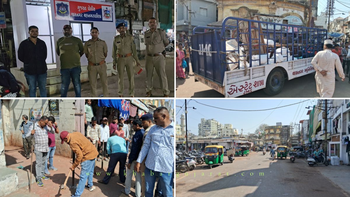 આ કામગીરી જામનગર સિટી એ ડિવિઝન પોલીસ સ્ટેશન ના પીઆઇ એન.એ.ચાવડા ના માર્ગદર્શન હેઠળ પીએસઆઇ એમ.એન.રાઠોડ તથા પીએસઆઇ વી.આર.ગામેતી સહિત જામનગર મહાનગરપાલિકા પાલિકા ની એસ્ટેટ વિભાગ ની ટુકડી દ્વારા સતત કાર્યવાહી કરવામાં આવી રહી છે.