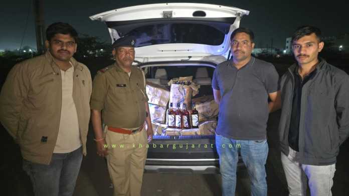 જામનગર શહેરમાં ગત મોડી રાત્રે સિટી-એ ડિવિઝન પોલીસે અસરકારક કાર્યવાહી કરતાં હાપા માર્કેટિંગ યાર્ડ નજીકથી શરાબના જંગી જથ્થા સાથે એક કિયા સેલ્ટોસ કાર જપ્ત કરી હતી. નિયમિત પેટ્રોલિંગ દરમિયાન પોલીસ ટીમે શંકાસ્પદ કારને અટકાવવાનો પ્રયાસ કરતાં કારચાલકે પોલીસને જોઈ નાસી છૂટતા સ્થળ પરથી કાર કબ્જે લેવામાં આવી હતી. પોલીસ તપાસમાં કિયા સેલ્ટોસ કાર નં. GJ-03-MH-4590માંથી કુલ 168 ઇંગ્લિશ દારૂની બોટલો મળી આવી હતી. શરાબના જથ્થા સાથે કાર સહિતનો કુલ મુદામાલ રૂ. 10,84,000ના મૂલ્યનો હોવાનું પ્રાથમિક અંદાજ છે.