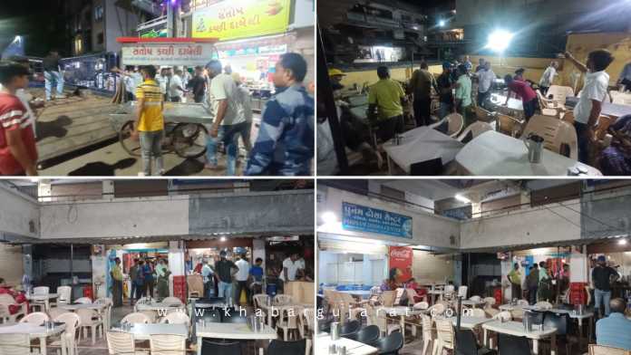 જામનગરમાં પટેલ કોલોનીમાં ગેલેરિયા કોમ્પ્લેક્સ પાસેથી ખાણી-પીણીના ધંધાર્થીઓના દબાણ હટાવાયા