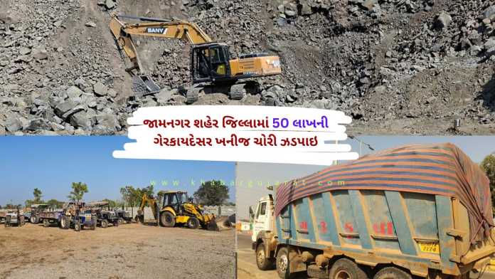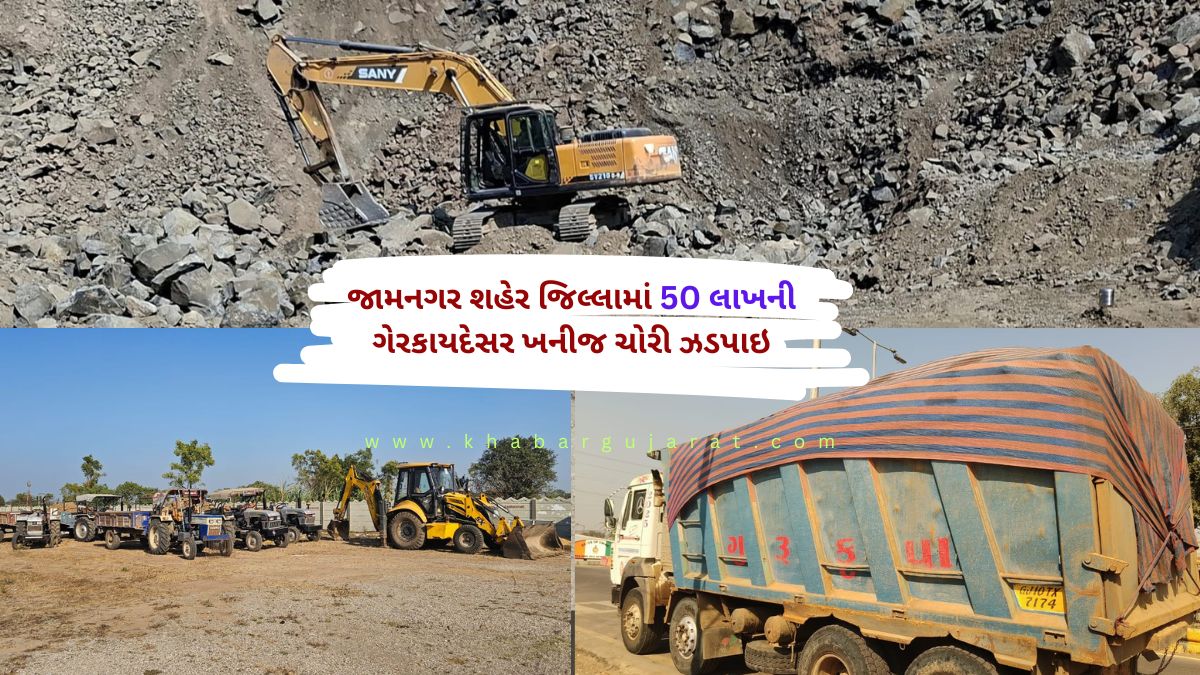 દરોડાની વિગત મુજબ ભુસ્તર શાસ્ત્રી જામનગરની સુચનાથી ખાણ ખનીજ વિભાગના ભાવેશભાઇ, નૈતિકભાઇ, રજનીકાંતભાઇ, નીખીલભાઇ, રમેશભાઇ, આનંદભાઇ સહિતની ટીમ દ્વારા જામનગર જિલ્લાના જોડિયા તાલુકાના કેશીયા ગામ ખાતેથી બ્લેક ટ્રેપ ખનીજના ગેરકાયદેસર ખાણ કામ અંગે કરશનભાઇ ભીખાભાઇ ગાગીયાની માલીકીનું સેની કંપનીના એકસાકવેટર મશીન સીઝ કરી શિવ રોક ક્રશર ખાતે રાખવામાં આવ્યું હતું. આ ઉપરાંત એરફોર્સ ગેઇટ પાસેથી સાદી રેતી ખનીજના રોયલ્ટી પાસ વગર ગુરૂકૃપા એન્ટરપ્રાઇઝની માલીકીના જીજે10 ટીએકસ 7114 નંબરનું ડમ્પર ઝડપી લીધુ હતું. આમ કુલ રૂા.50 લાખના મુદામાલ ઝડપાયો હતો.