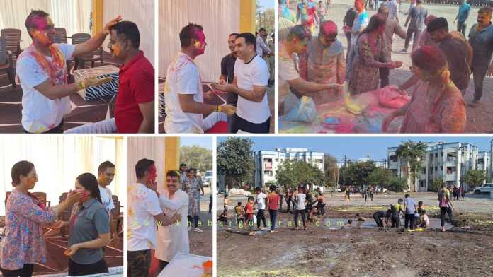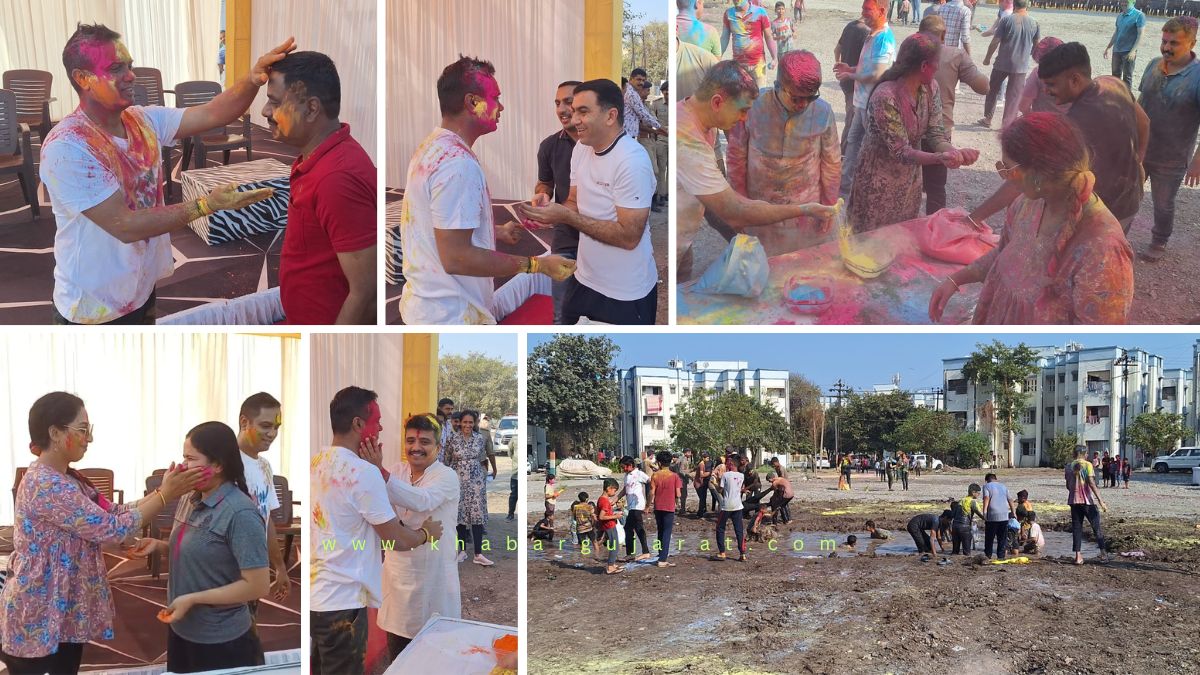 જામનગર શહેરમાં ગઇકાલે ધુળેટી પર્વની ઉજવણી કરવામાં આવી હતી. શહેરીજનોએ મનભરીને રંગોત્સવ મનાવ્યો હતો. ત્યારે શહેરીજનોની સાથે સાથે જામનગર જિલ્લા પોલીસ પરિવાર પણ ધુળટીના રંગે રંગાયો હતો. પોલીસ દ્વારા શહેરીજનો શાંતીપૂર્ણ રીતે તહેવાર માણી શકે તે માટે બંદોબસ્ત ગોઠવવાની સાથે સાથે ધુળેટી પર્વની પણ પરીવાર સાથે ઉજવણી કરી હતી.