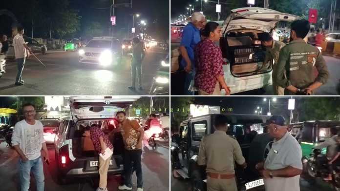 આ અંગેની વિગત મુજબ જામનગર શહેર અને જિલ્લામાં સ્થાનિક ચૂંટણીઓના નગારા વાગી રહ્યા છે. જેને અનુલક્ષીને જામનગર પોલીસે સતર્કતાના ભાગરૂપે શહેરમાં જી.જી. હોસ્પિટલ, લાલપુર બાયપાસ, પવનચક્કી તથા શહેરના અન્ય હાર્દસમા વિસ્તારોમાં સઘન ટ્રાફિક ડ્રાઇવ યોજી હતી. આ ટ્રાફિક ડ્રાઇવ અંતર્ગત જામનગર સિટી ‘એ’, જામનગર સિટી ‘બી’ તથા જામનગર પંચકોષી ‘બી’ ડિવિઝનનો કાફલો જોડાયો હતો. પોલીસ વિભાગે સઘન ચેકિંગ કાર્યવાહી હાથ ધરી માર્ગ પરથી પસાર થતાં વાહનોના ચાલકો પાસેથી ડોક્યુમેન્ટની તપાસીને ખૂટતા ડોક્યુમેન્ટ અંગે દંડ કર્યો હતો. ફોર વ્હીલ ચાલકોની વાહનમાં લગાડવામાં આવેલા કાળા કાચ દૂર કરી રોકડ દંડ ફટકારાયો હતો. ટ્રીપલ સવારીમાં બાઇકચાલકોને રોકી તેઓ વિરૂઘ્ધ દંડ ફટકારી આકરી કાર્યવાહી હાથ ધરી હતી. નંબરપ્લેટ વગરની કાર અને બાઇક ચાલકો વિરૂદ્ધ પણ પોલીસે લાલ આંખ કરી આકરી કાર્યવાહી હાથ ધરી હતી.