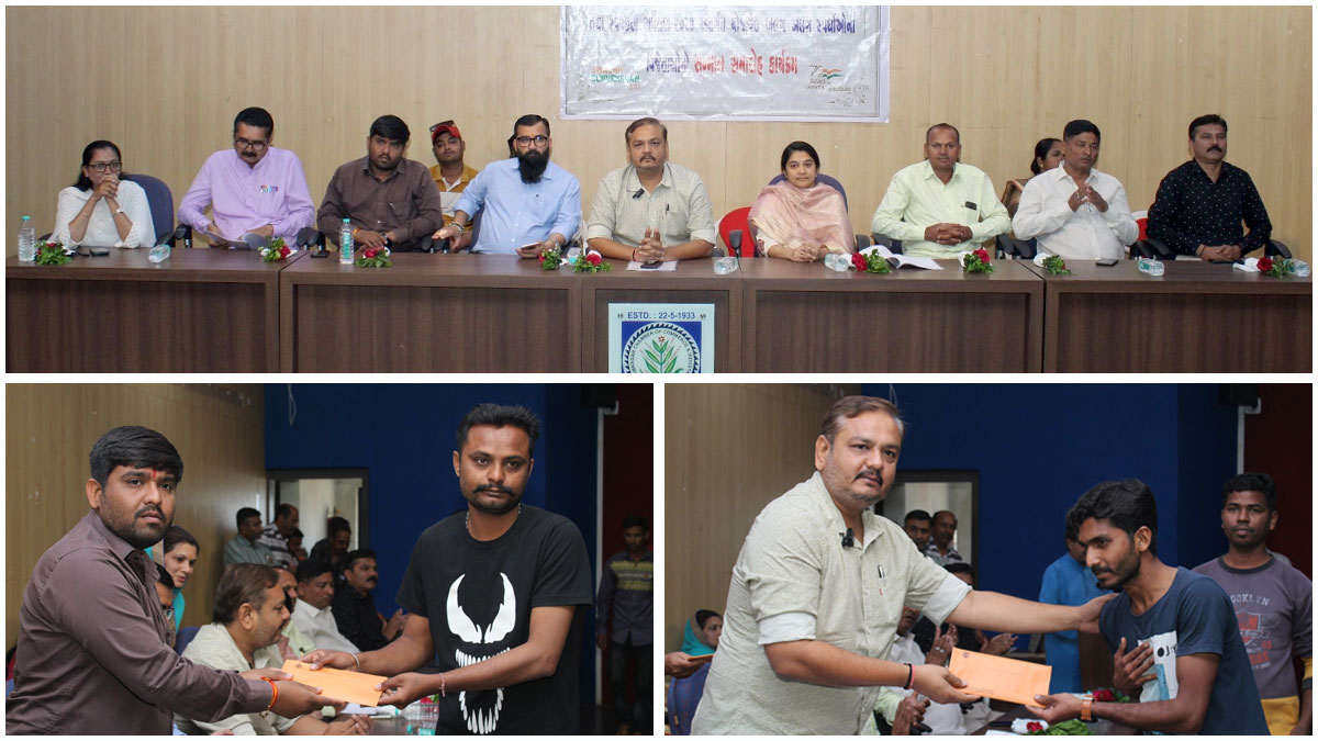 જામનગર મહાનરગપાલિકા ધ્વારા નવનિયુકત કર્મચારીઓના નિમણૂંક આદેશ વિતરણ તથા સ્વચ્છતા સર્વેક્ષણ-ર3 અંતર્ગત અલગ અલગ સ્પર્ધાના વિજેતાઓને સન્માનિત કરવાના કાર્યક્રમ તથા સોલિડ વેસ્ટ મેનેજમેન્ટ શાખાના 200 અવેજી સફાઈ કર્મચારીઓના નિમણૂંક આદેશો વિતરણનો જામનગર ચેમ્બર્સ ઓફ કોમર્સ ઈન્ડસ્ટ્રીઝ ખાતે કાર્યક્રમ યોજાયો હતો.